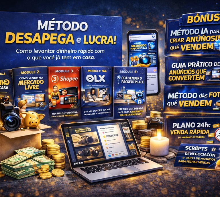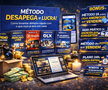 É um método simples e direto que ensina como transformar o que você já tem em casa em dinheiro rápido, com um passo a passo fácil de aplicar mesmo que você esteja começando do zero.